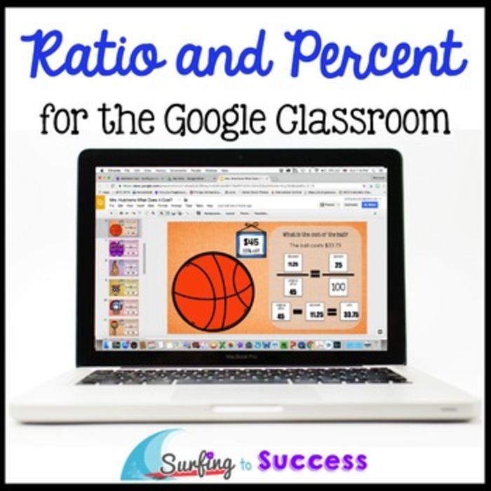 Use ratios to solve real world math problems with this digital Google Slides resource which contains digital task cards. Students find the discounted price of an item given the original price and a percent off. Students also find the percentage saved when purchasing an item at a discounted price.